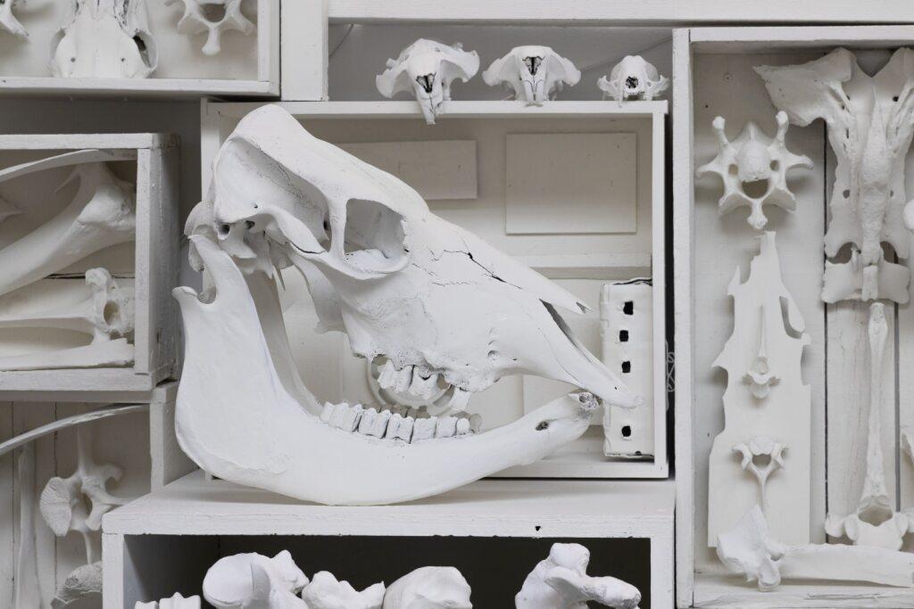 skeletal remains into thought-provoking compositions that challenge perceptions of