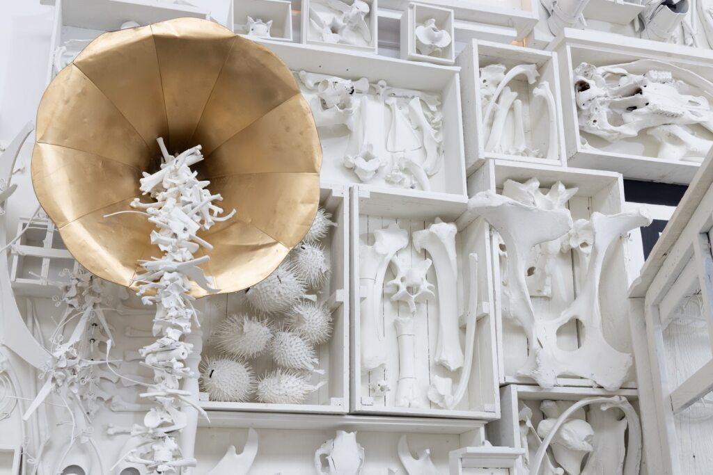 crafted from bones. Blending natural history with artistic imagination, Anthony transforms