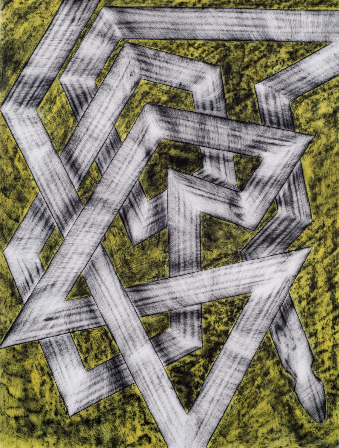 Charcoal and pastel on paper mounted to Dibond corner TV bracket, 2021